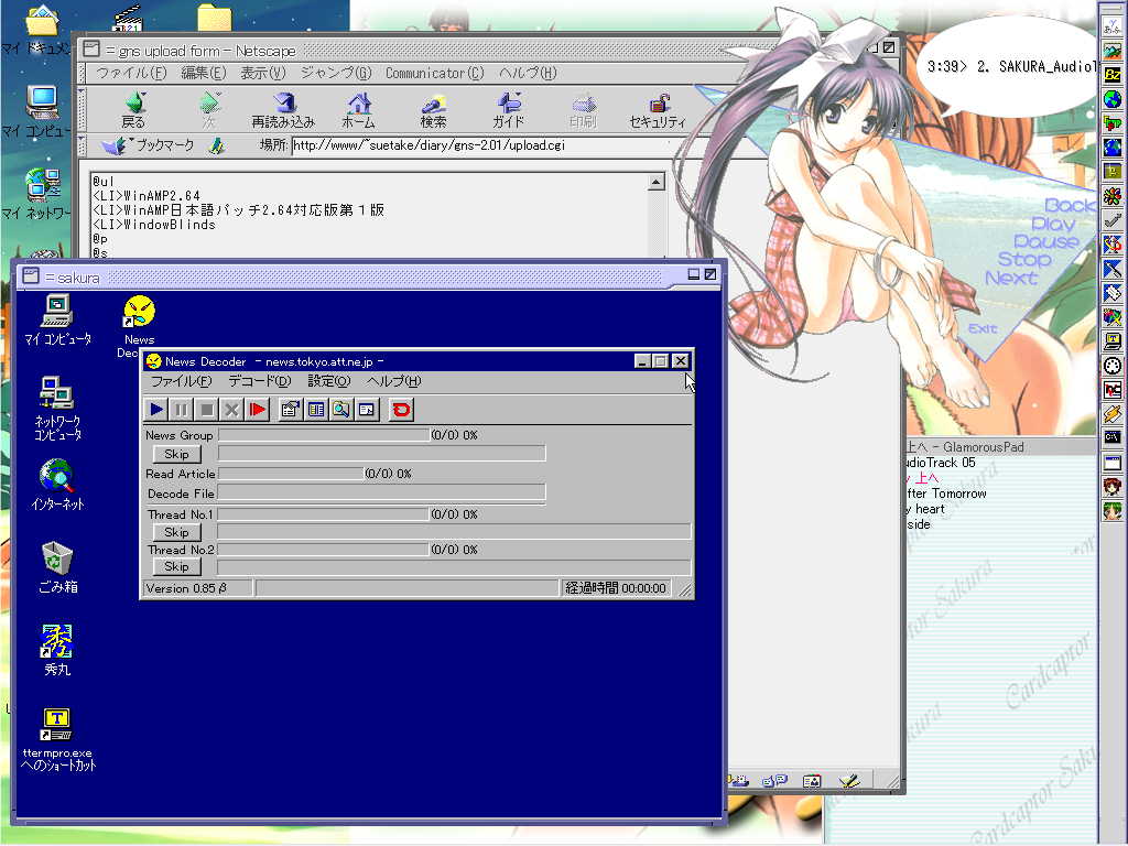 _ Winamp。標準のin_mp3よりin_mpg123のほうがまぢで音いいな。あくまで比較しての話だけど。